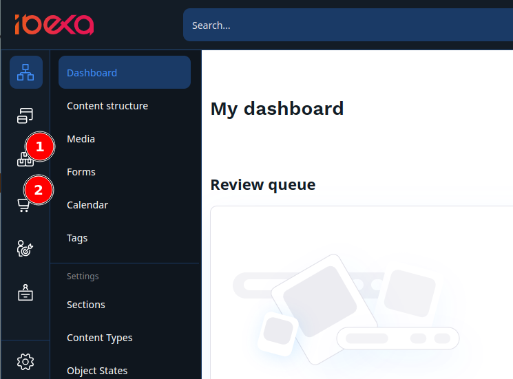 Ibexa Commerce ajoute deux nouveaux menus à Ibexa Content :