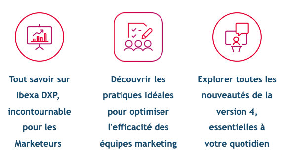 Ibexa Product TourRendez-vous le 6 décembre à 9h30Nous avons le plaisir de vous inviter à l'Ibexa Product Tour, un évènement entièrement dédié à Ibexa DXP et répondant à 100% vos besoins en tant que marketeurs ! Cet événement hybride exclusif aura lieu le 06 décembre prochain à Paris et sera rediffusé en direct pour ceux qui souhaiteraient le visionner à distance. Toutes les nouveautés d'Ibexa DXP, idéale pour les marketeurs.Lors de cet évènement unique, vous pourrez : explorer les meilleures pratiques pour être efficace dans votre travail quotidien, découvrir Ibexa DXP en tant que plateforme unifiée et composable, obtenir une vue complète de toutes les nouveautés d'Ibexa DXP de la version 4 et des versions à venir : PIM, Automatisation, Commerce, CDP, IA... pour vos équipes qui éditent vos sites web et utilisent la plateforme au quotidien. |