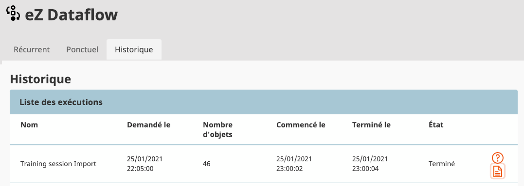La version eZ Dataflow 2.3 vous permet désormais de suivre les retours d'erreurs ou d'informations (logs) directement dans votre interface backoffice. Intégrée à l'historique de vos actions d'import ou d'export de données, visualiser les logs et simplifiez vous la vie.